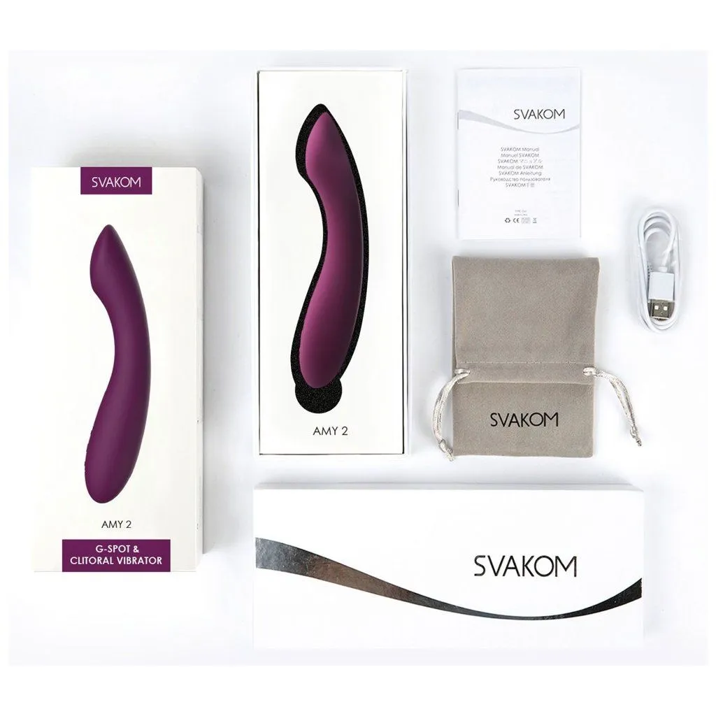 Вибратор Amy 2 от Svakom эргономичен и идеально изогнут, с уплощенным наконечником, специально разработанным для целенаправленной стимуляции точек удовольствия на теле . Мягкий и шелковистый, гибкий силиконовый вибратор идеально ложится в руку. Таким образом, мягкий стимулятор можно увлекательно включить в любую сольную и парную игру.