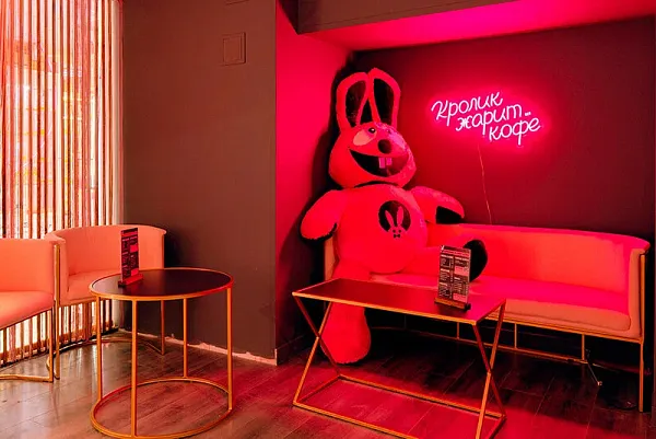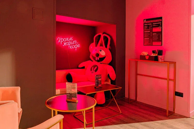В магазине работает наша кофейня "Кролик жарит кофе"! Приглашаем вас на чашечку ароматного капучино с красивым эротическим десертом!